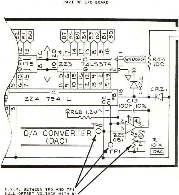 - Check Z20, the 8 bit DAC on the I/O Board. This 7523 chip may be a T523J or a 7523L. The 7523L may produce slightly better results than the 7523J.
