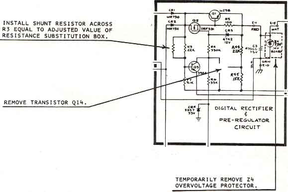 - Replace the resistance substitution box with a fixed resistor of the indted [sic?] value shunting R3. Replace the overvoltage protector, Z4 and the four supply connectors.