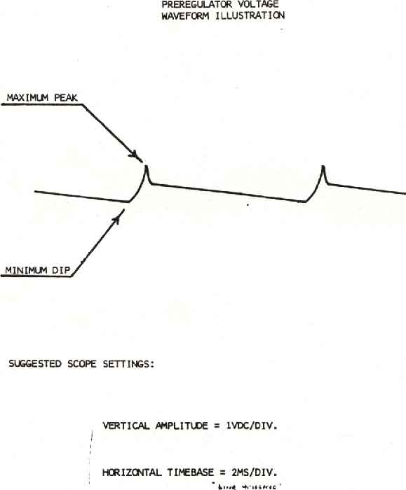 - Adjust the resistance across R3 until the minimum DIP of the pre-regulator voltage is at least 6.0 VDC. See waveform illustration.