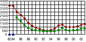 Typical serial number/s: 21010022 (the 22nd made - originally Ken Freeman's, and then owned by Global Communications), 21010247, 21030417, 21030620 (the Halloween model mentioned above), 21030725. The serial number list on the Chroma site (with, in May 02, around 20 from [21010004] to 21010299, one 21020003, 40-odd between 21030085 and 21030930, and one 21040012, might back up the following guesstimate of numbers made: around 300-350 of the first series (2101); 3-50 of the second series (2102); 1000-1200 of the third series (2103); and 1-50 of the fourth (2104). It looks likely that about 1500 were made.