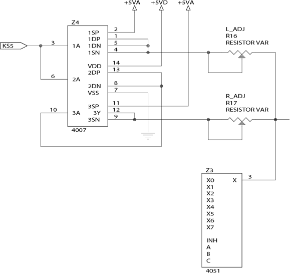 When KS5 = 1, the operation noted above is essentially reversed, and R16 will be disconnected, with R17 being connected to analog +5V.